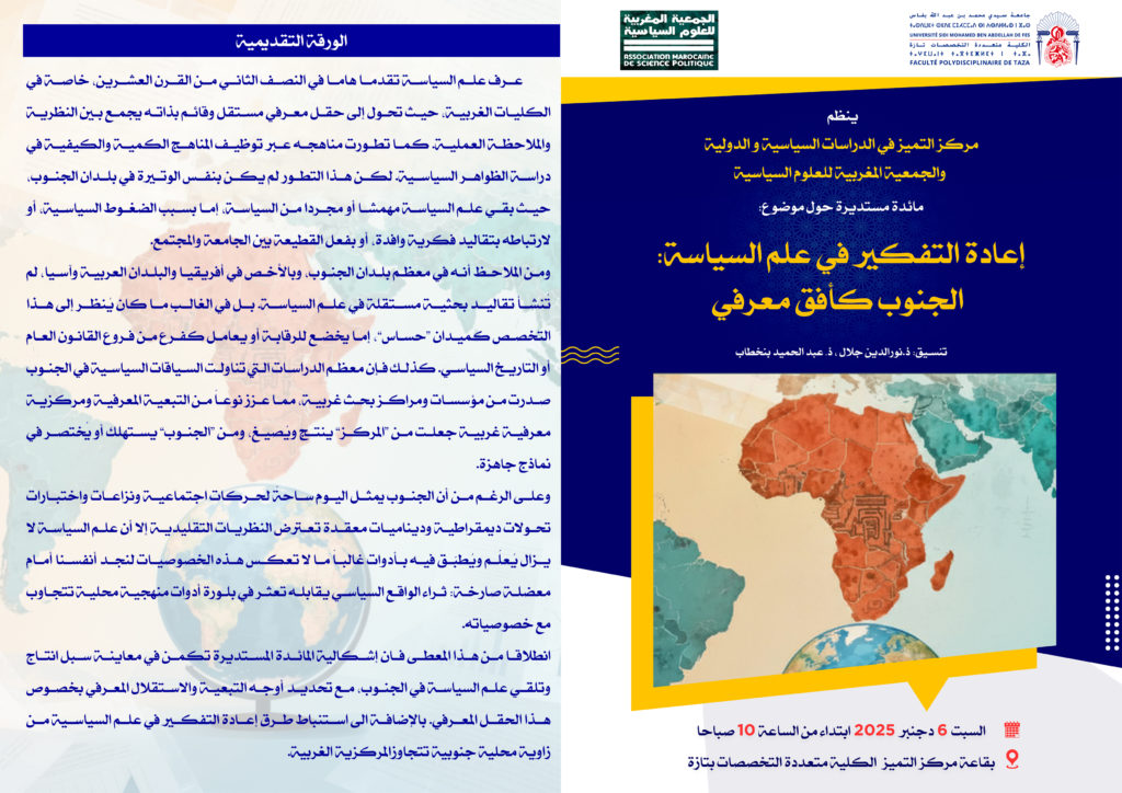 مائدة مستديرة حول موضوع : إعادة التفكير في علم السياسة : الجنوب كأفق معرفي