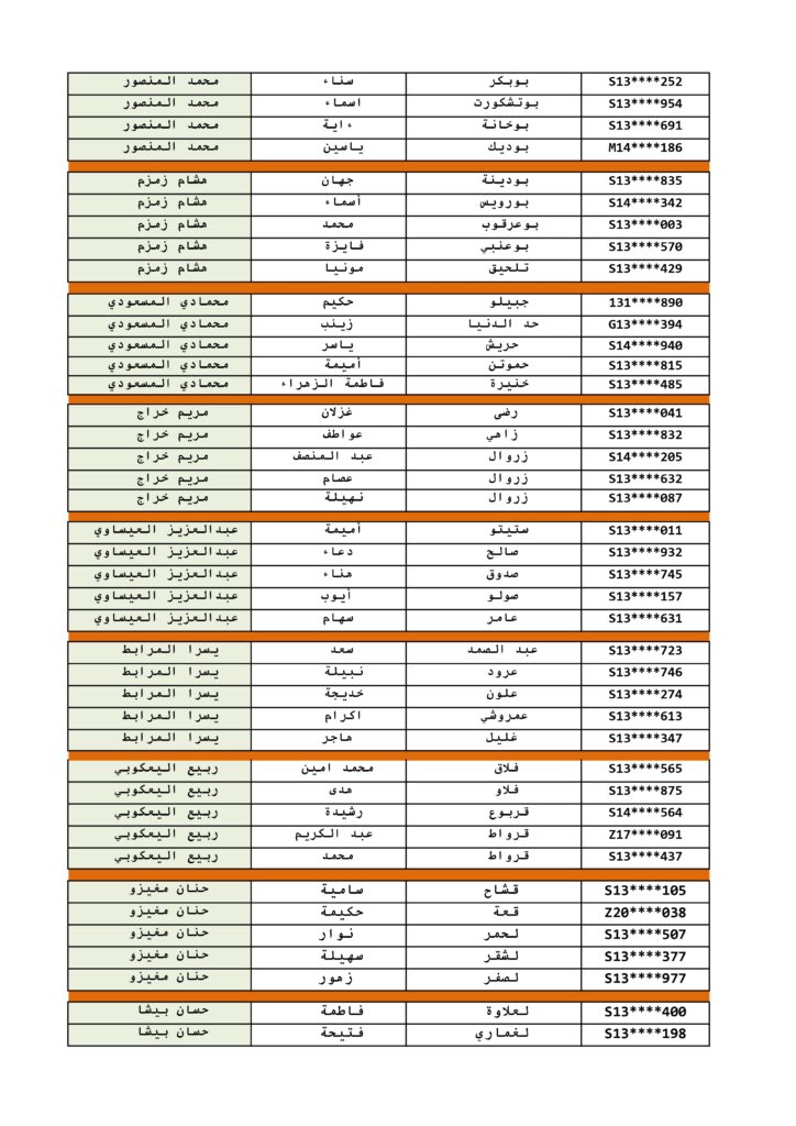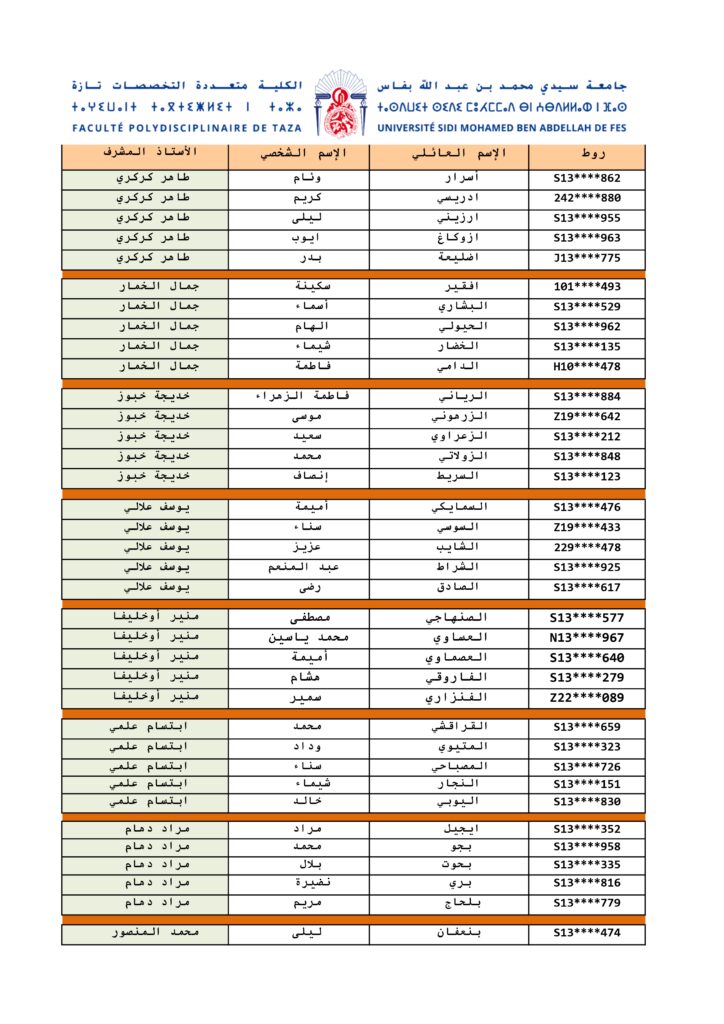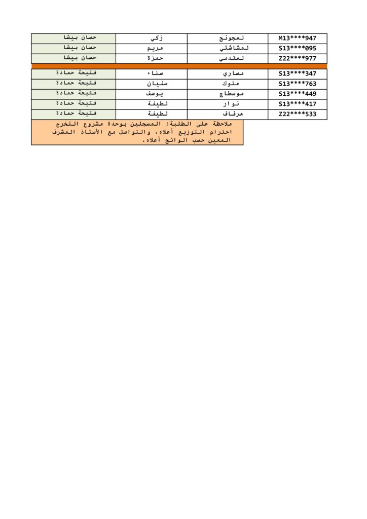 لائحة الطلبة المسجلين بوحدة مشروع التخرج لمساري شعبة مسار قانون الأعمال والرقمنة