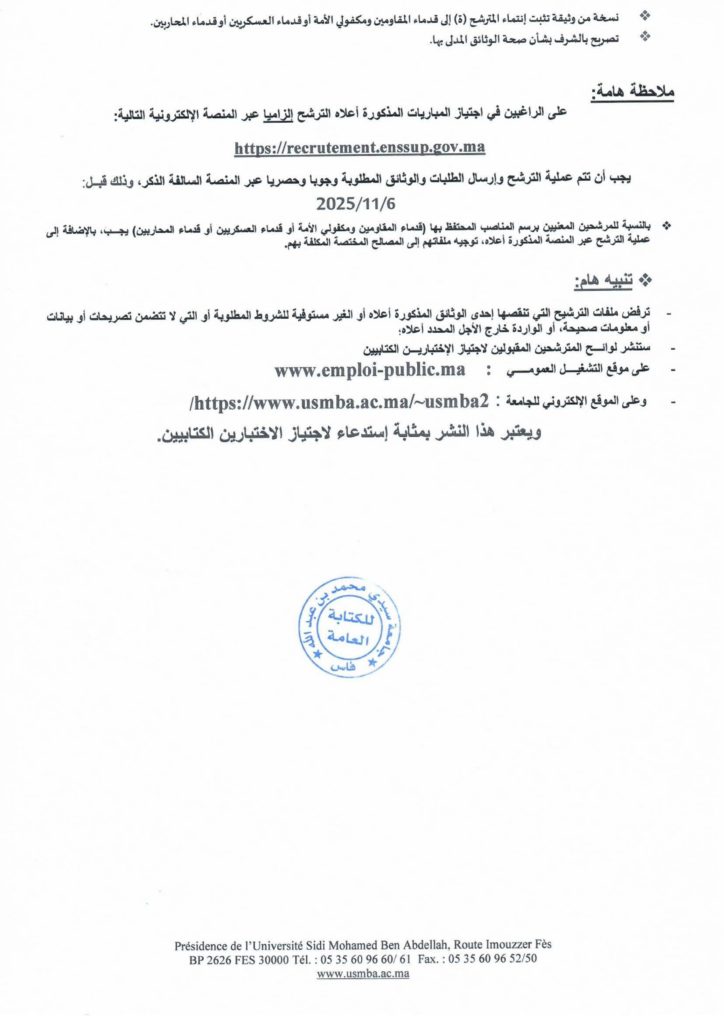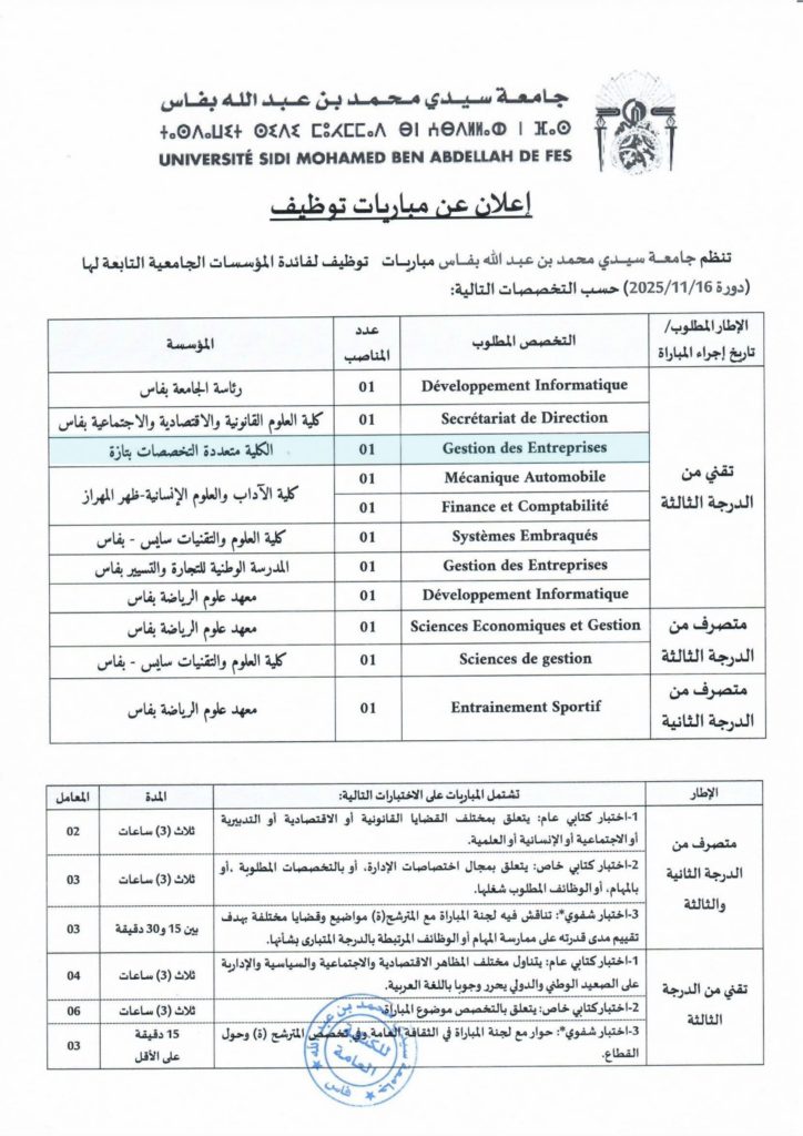 إعلان عن مباريات توظيف على صعيد الجامعة (دورة 16/11/2025)