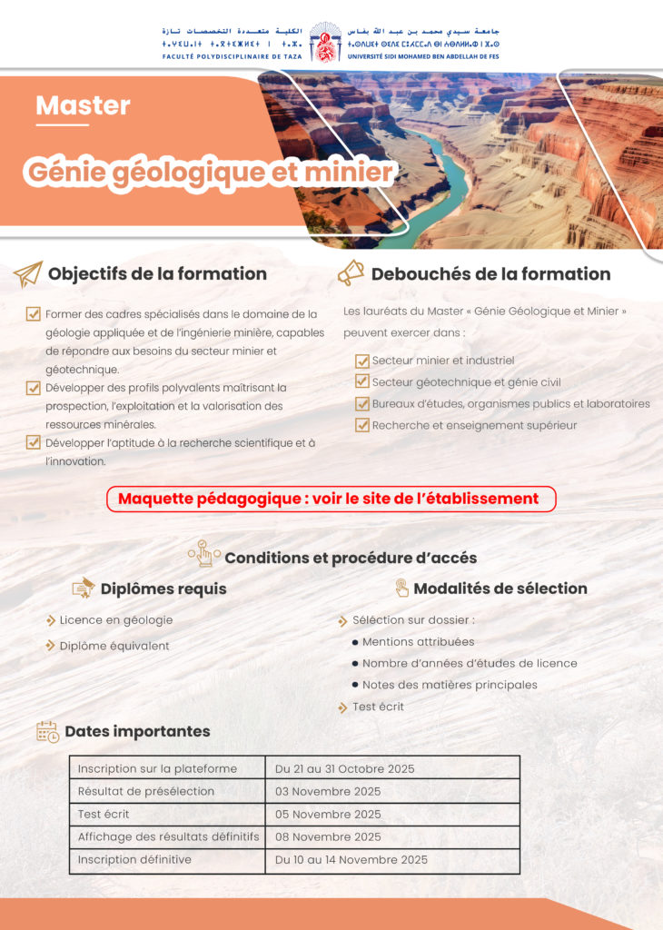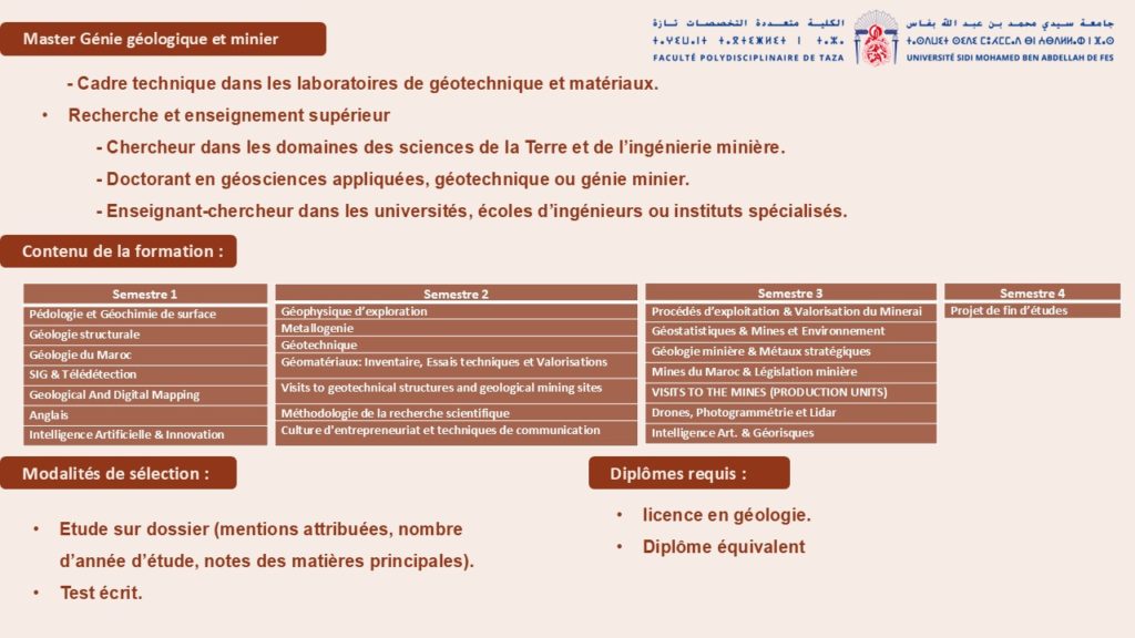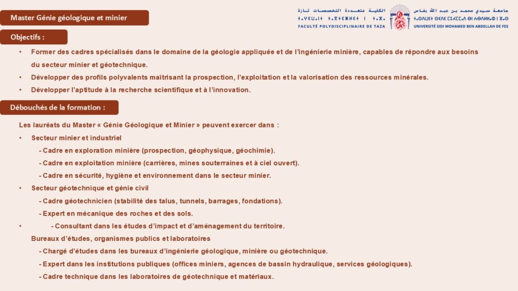 Pour vous inscrire au Master Génie géologique et minier, veuillez cliquer sur le lien suivant : Lien d’inscription