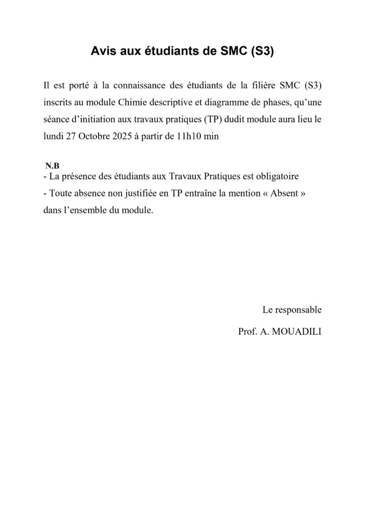 Avis aux étudiants de la filière SMC (S3)