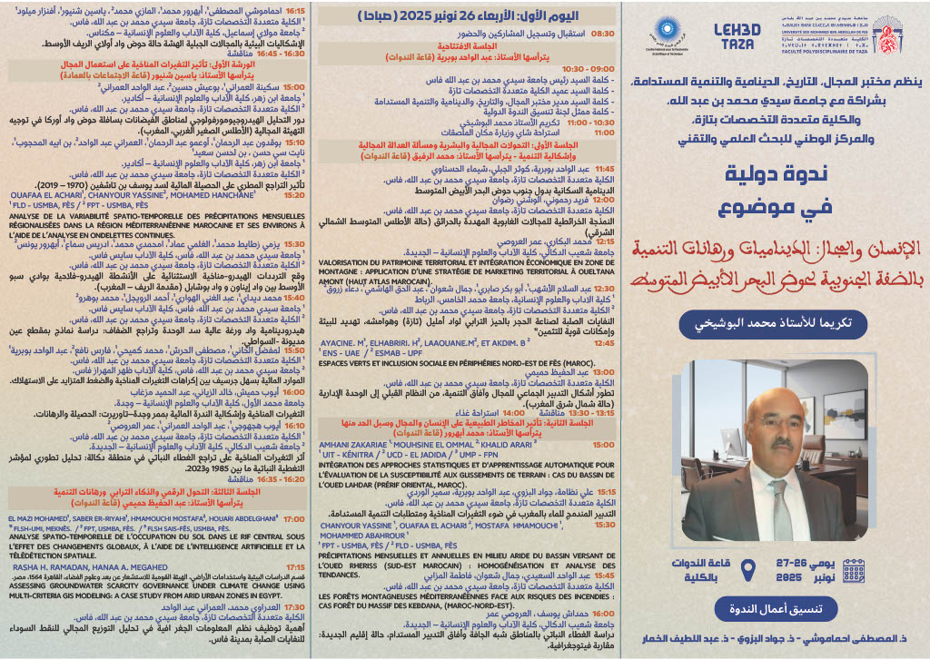 ندوة دولية في موضوع الإنسان والمجال : الديناميات ورهانات التنمية بالضفة الجنوبية لحوض البحر الأبيض المتوسط