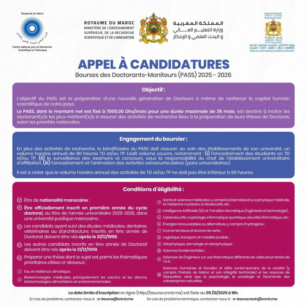 Appel à candidatures bourses des doctorants moniteurs PASS 2025-2026