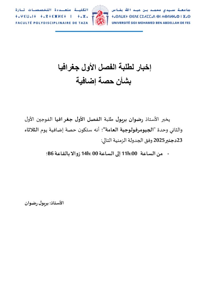 إخبار لطلبة الفصل الأول جغرافيا الفوجين الأول والثاني – وحدةالجيومرفولوجية العامة