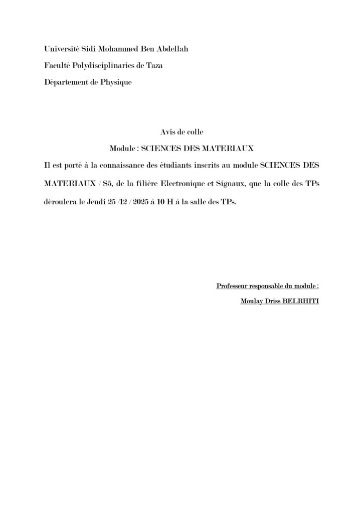 Colle_TP_Sciences Des Matériaux_S5 – filière Electronique et Signaux