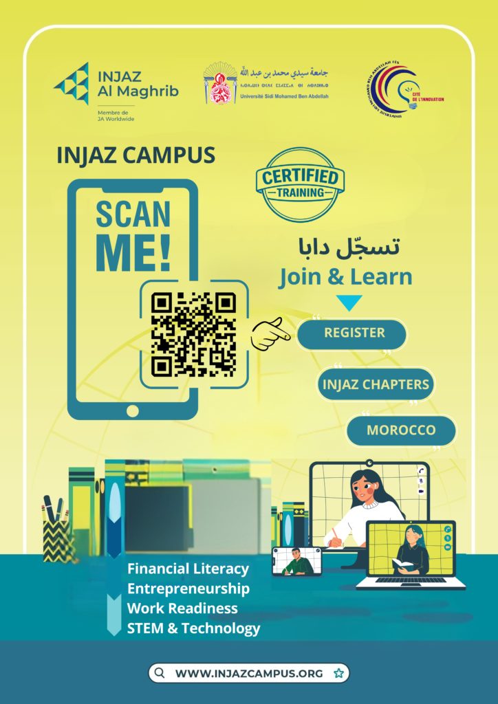 Dans le cadre des actions de renforcement de l’employabilité et du développement des compétences transversales des étudiants de l’Université Sidi Mohamed Ben Abdellah, la Cité de l’Innovation organise, en collaboration avec Injaz Al Maghreb, une séance d’information sur la plateforme de formation en ligne INJAZ Campus.
