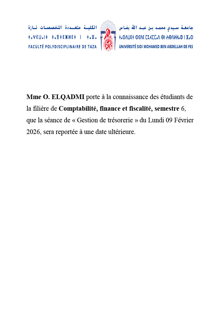 Avis aux étudiants de la filière de Comptabilité, Finance S6