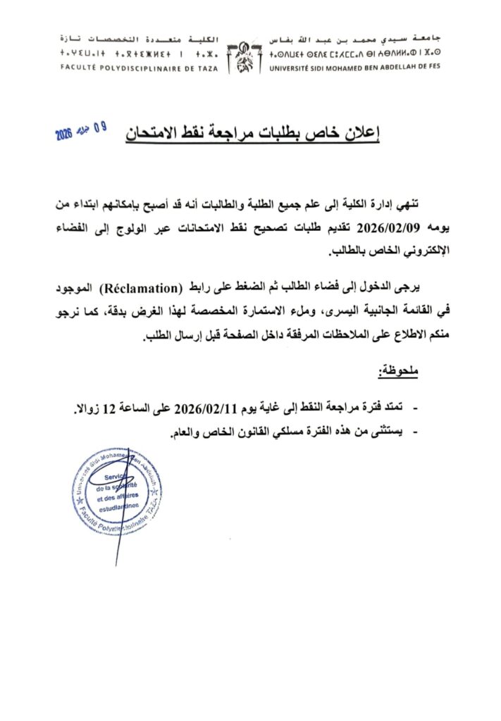 إعلان خاص بطلبات مراجعة نقط الإمتحان