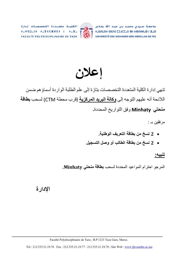 إعلان لفائدة الطلبة الممنوحين الجدد
