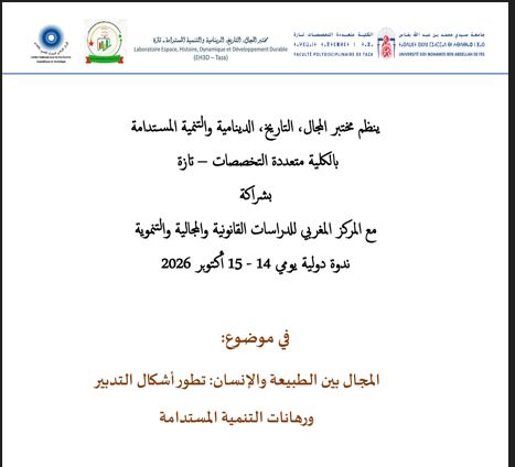 ندوة دولية في موضوع : المجال بين الطبيعة والإنسان : تطور أشكال التدبير ورهانات التنمية المستدامة