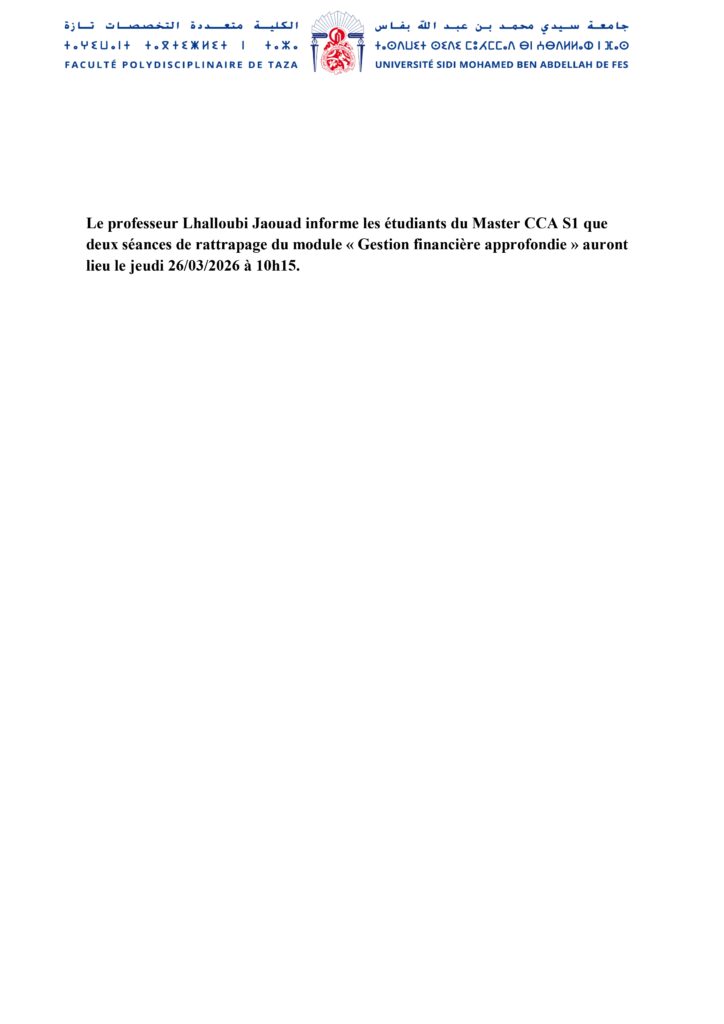 avis aux étudiants du Master CCA S1 – Module Gestion Financière Approfondie