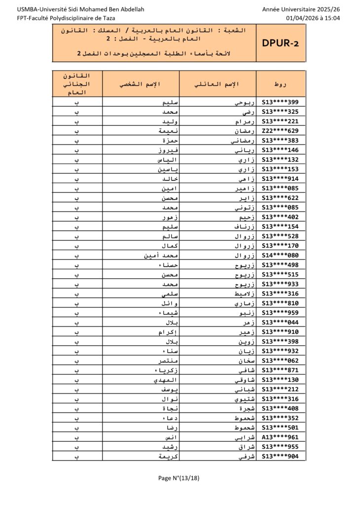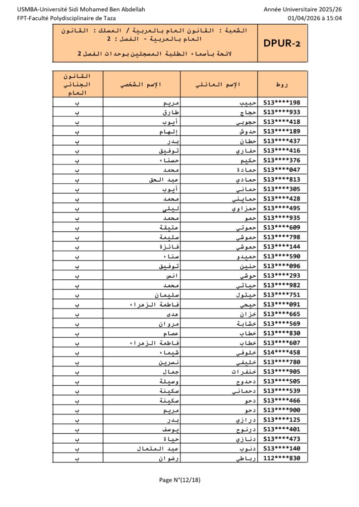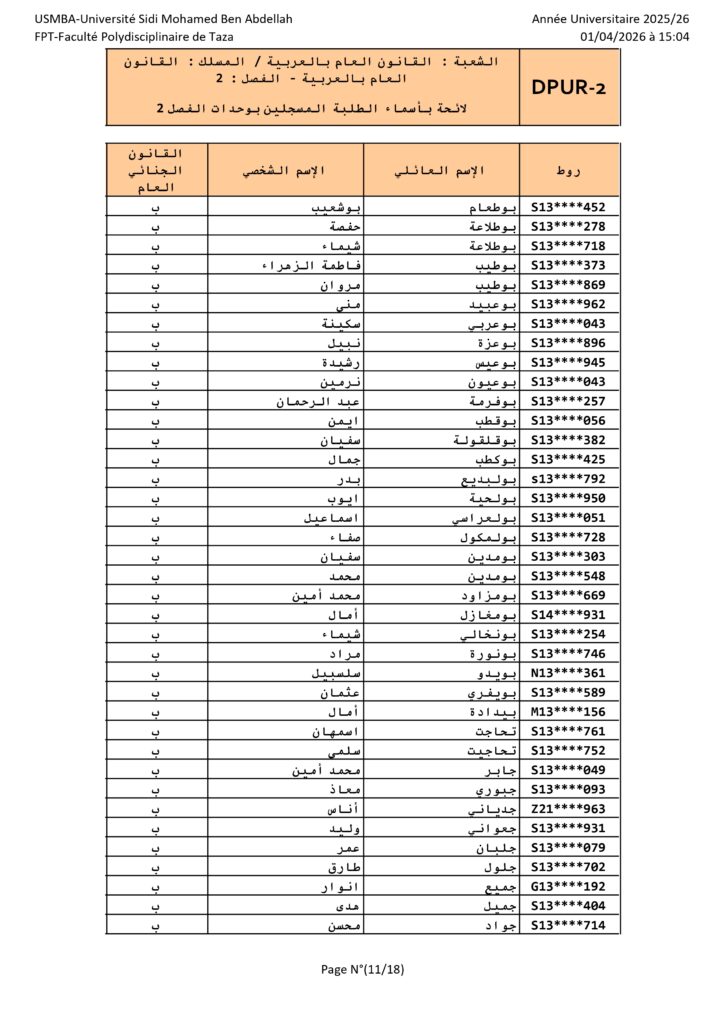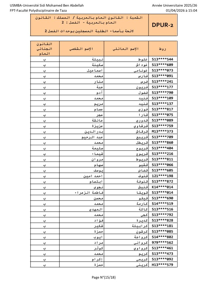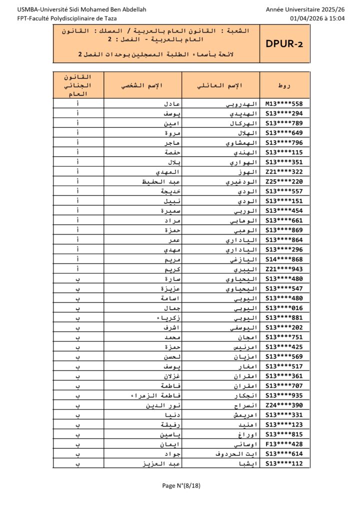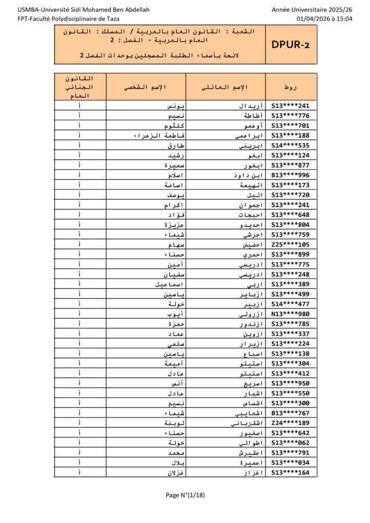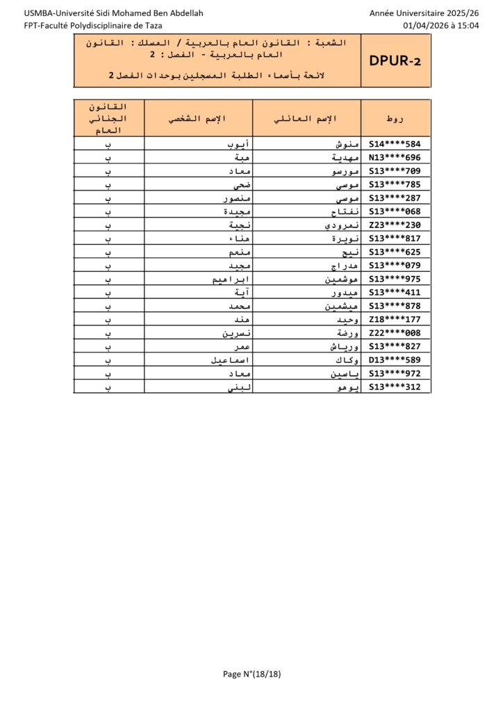 القانون العام الأفواج – الدورة الربيعية